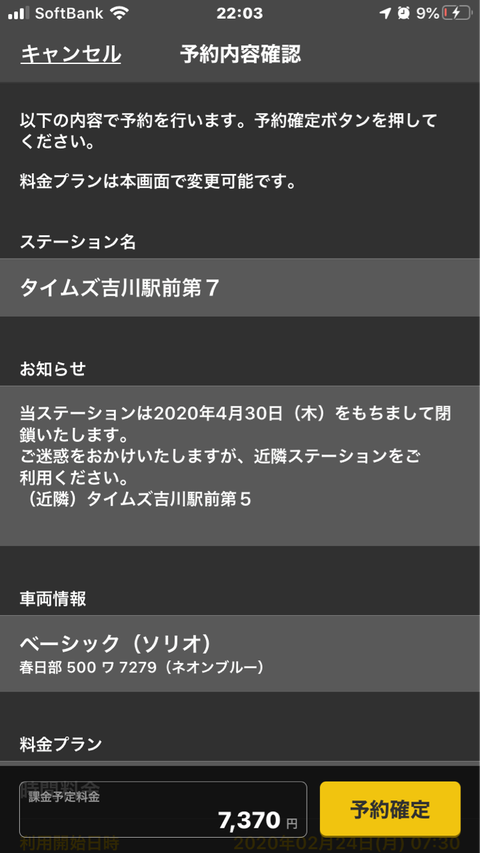 スポンサーリンク タイムズカーシェア吉川駅前第7ステーションがなくなってしまいます。。。2020年4月30日を持って閉鎖日々の生活TwitterFacebookはてブPocketLINEコピー 2020.02.25自宅から近いため利用させて頂いているタイムズカーシェア吉川駅前第7ステーションですが、昨日の予約の際に近々閉鎖になる事がわかりました。2020年4月30日を持って閉鎖とのこといやー便利に利用させて頂いていたので非常に残念です。ここのステーションは、日産ノートとホンダのフィット、スズキのソリオと3台の異なる車が配置されていて本当に便利だったので悔やまれます。もう少し吉川美南寄りにある駐車場に新しくタイムズカーシェアのステーションが出来ると良いのですが。。。