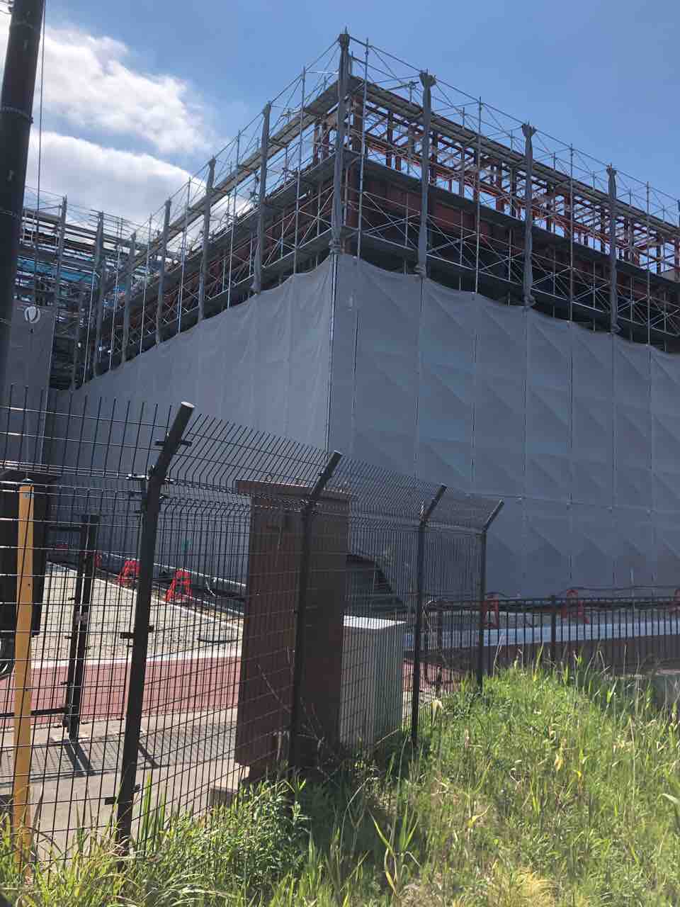 先月終わりに駐車場らしき躯体が建てられていたところでしたがもう大分出来上がっていました。